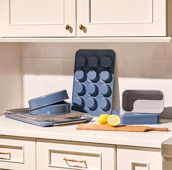 Make healthier baking a piece of cake with our ceramic-coated bakeware. Our Bakeware Set includes 11 pieces, all featuring a toxin-free ceramic surface, so you can get to baking goods without any of the bads. Sets include storage organizers to keep your kitchen tidy.